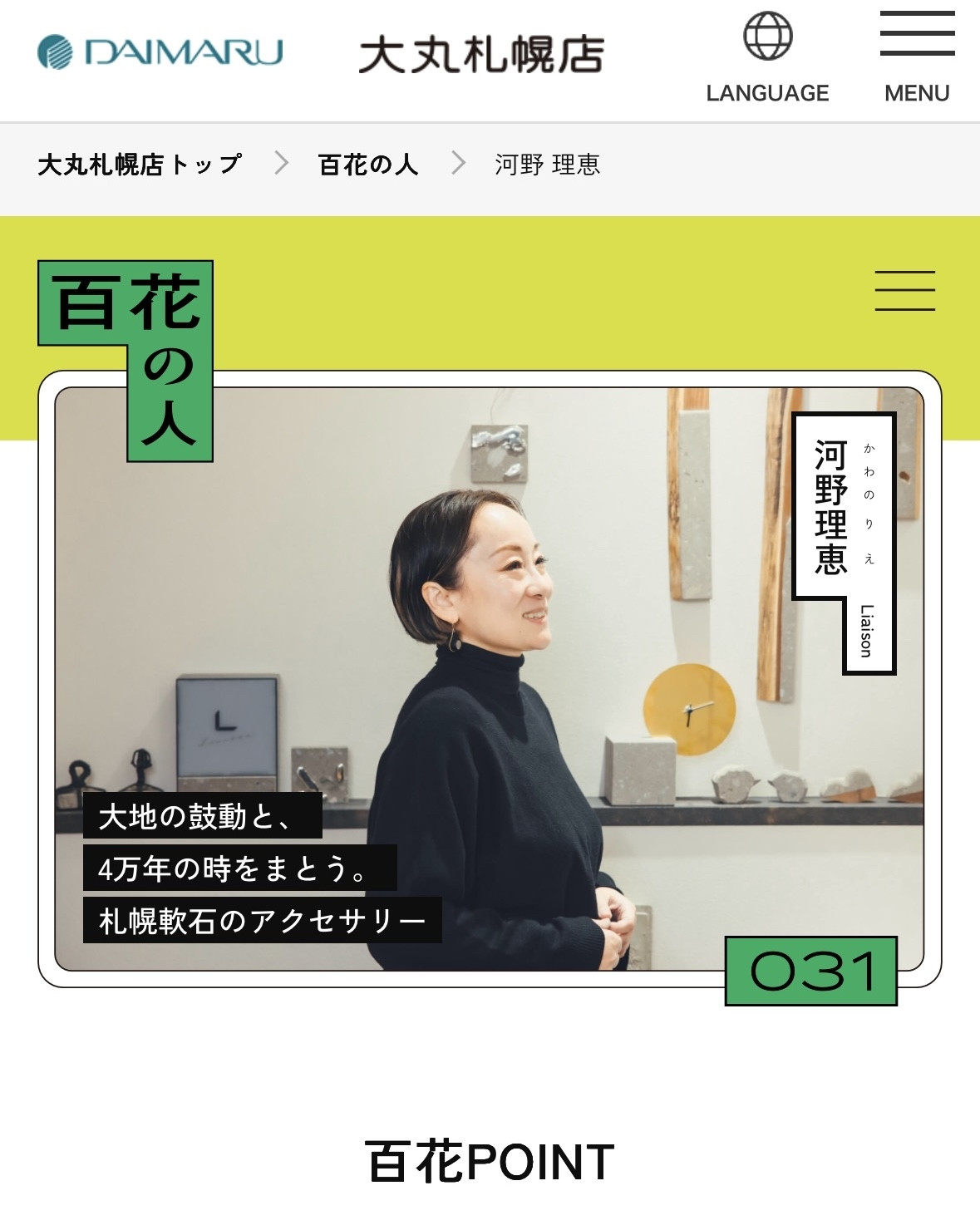 大丸札幌店のホームページ内コーナー【百花の人】に取材していただきました。